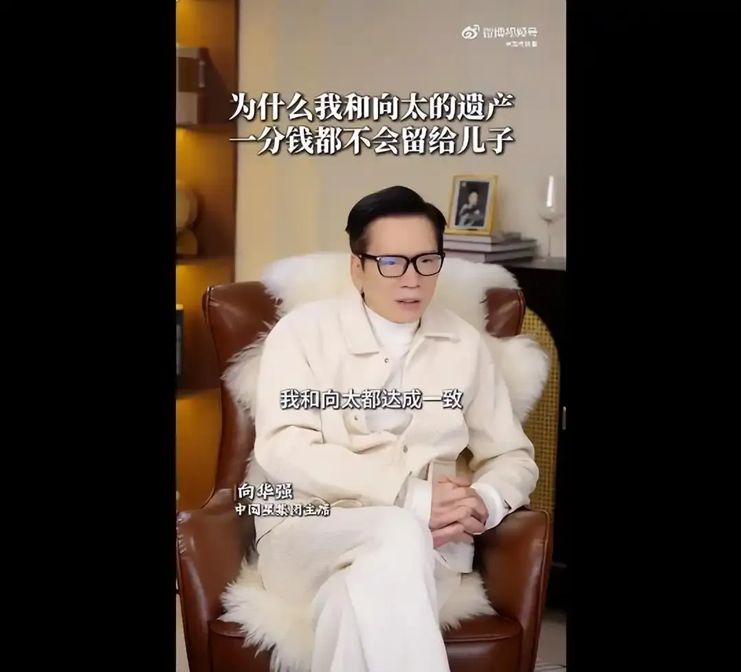 2月25日,向华强发布视频回应遗产问题并谈及小儿子向佑。他透露已和向太达成一致,遗产都交给郭碧婷来管,一分钱不留给儿子。此外,向华强还坦言此举让小儿子向佑直喊不公平,他还表示,向太已将向佑微信拉黑删除,自己也没有他的微信,向佑都是通过自己的秘书来联系自己,面对向佑的见面邀约,向华强也会以没时间为理由拒绝。