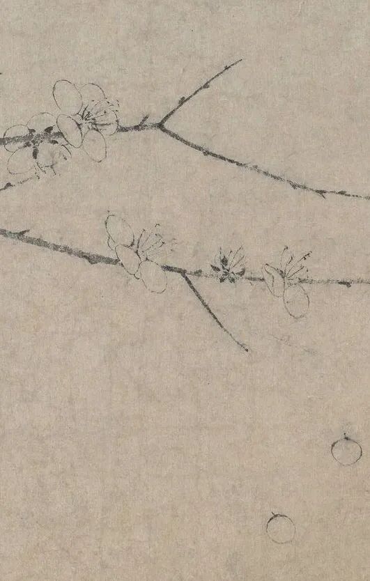 扬无咎画梅,特别注重梅花的“神”。他用飞白写干,篆意成枝,笔轻意简,却把梅花那种不屈不挠的劲儿全画出来了。那花瓣,白描双勾,浓墨点蕊,看似简单,实则把梅花的清雅高洁表现得淋漓尽致。