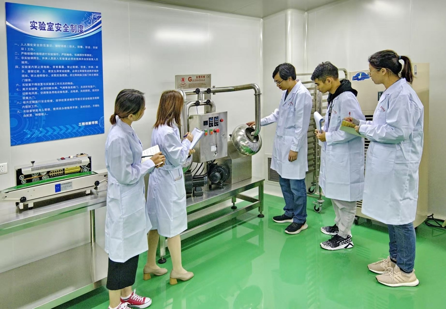 上海应用技术大学食品科学与工程(中本贯通)专业学生在食品工艺实训室学习 采访对象供图